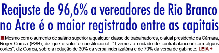 Procurado pelo G1, Juraci Nogueira (PP), presidente da Câmara Municipal de Rio Branco na época da votação do reajuste e atualmente vereador reeleito, diz que “só houve uma atualização do valor porque a Casa ficou 12 anos sem aumento”. “A lei também diz que, em uma cidade de mais de 300 mil habitantes, o vereador deve ganhar 60% do que ganha um deputado estadual”, afirma.