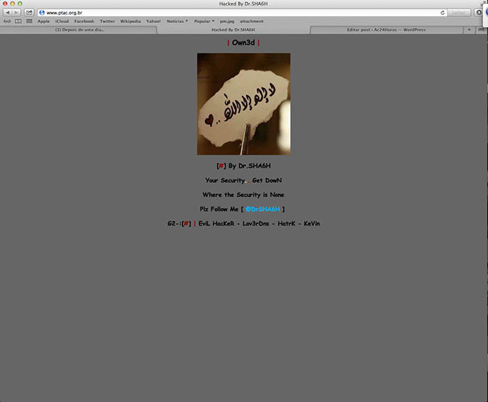 O invasor da página do PT se identificou como “Hacked By Dr.SHA6H”. O hacker deixou a seguinte mensagem: