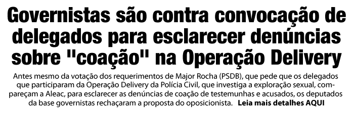Antes mesmo da votação dos requerimentos de Major Rocha (PSDB), que pede que os delegados que participaram da Operação Delivery da Polícia Civil, que investiga a exploração sexual, compareçam a Aleac, para esclarecer as denúncias de coação de testemunhas e acusados, os deputados da base governistas rechaçaram a proposta do oposicionista.