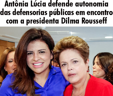 Antonia Lúcia tratou pontos importantes em favor das defensorias publicas. E debateu a falta de defensores públicos nas principais cidades do país. “Para solucionar este problema, não depende apenas da decisão dos governos dos estados. Esta pauta será uma das minhas prioridades ainda nos próximos trinta dias”, disse a presidenta Dilma.
