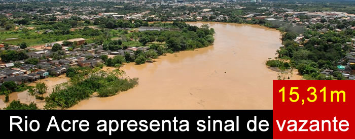 Das 6h da manhã desta quinta-feira, 28, até às 9h, o nível do rio Acre, em Rio Branco, baixou 2 centímetros, de acordo com a medição da Defesa Civil Estadual. Esse foi o primeiro sinal de vazante após dias de intensa sequencia do aumento do nível das águas na capital.