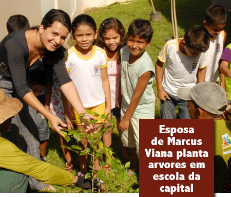 A primeira dama de Rio Branco, Gicélia Viana, plantou mudas de arvores com as crianças da escola Juvenal Antunes, no bairro Waldemar Maciel nesta sexta-feira. 5. Idealizadora do projeto, a esposa de Marcus Viana que arborizar as escolas e tornar as crianças mais conscientes com relação à preservação ambiental