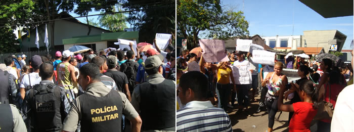 Os manifestantes protestam contra uma ação de desocupação de área invadida movida pelo governo do Estado. Há quase dois anos cerca de 150 famílias invadiram uma área de terra localizada na região do bairro Alto Alegre, na estrada AC-10, mas na ultima semana receberam uma ordem judicial estipulando um prazo de 15 dias para desocuparem o local.