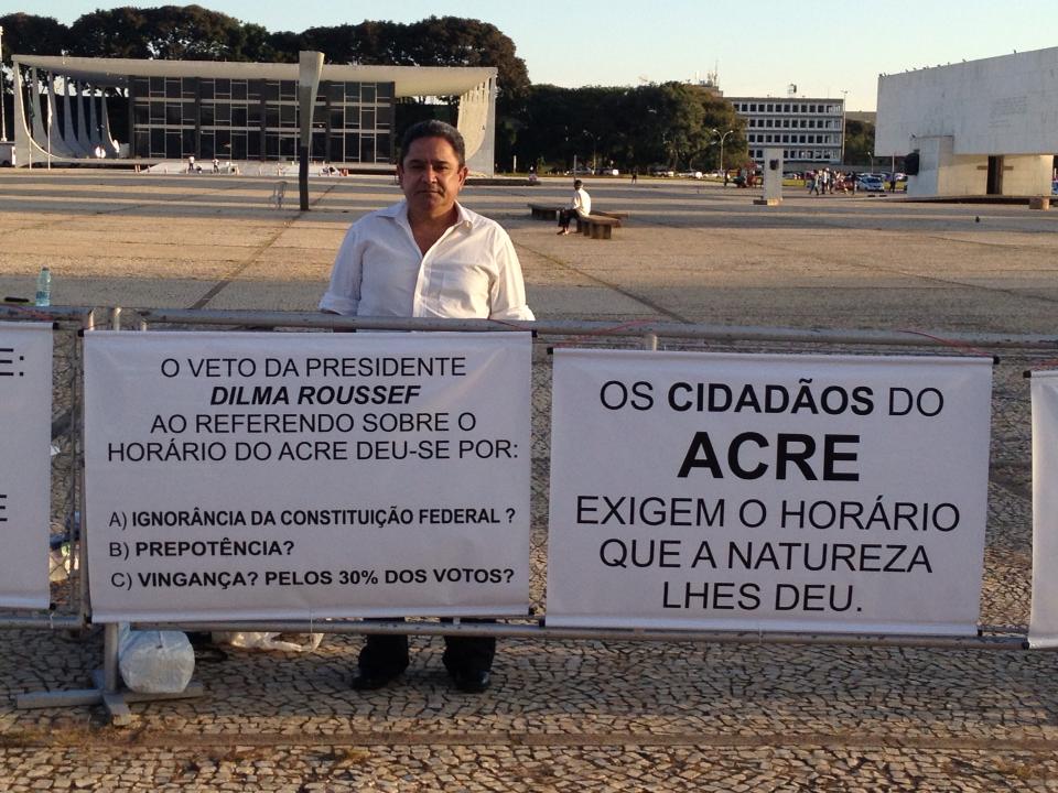 O ex-deputado federal João Correia, que iniciou ontem uma greve de fome na Praça dos Três Poderes, em Brasília (DF), até que a Presidente Dilma Rousseff reconheça a vontade do povo acreano, que decidiu em 2010, a volta do antigo horário, interage a todo momento por meio do facebook. À todo momento Correria recebe mensagens de apoio e criticas também.