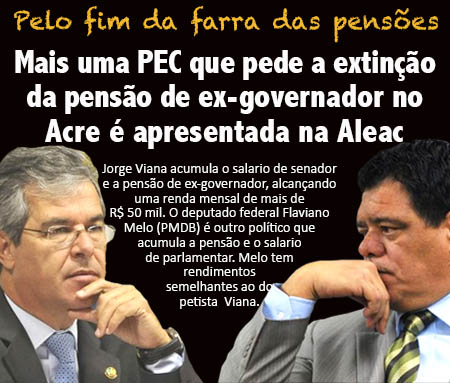 O benefício que foi extinto pelo ex-governador Orleir Cameli e reestabelecido pelo ex-governador e atual senador Jorge Viana (PT), que apresentou um projeto na época em que governou o Estado, propondo o retorno na pensão, considerada por muitos juristas, como um benefício imoral apoiado por leis estaduais aberrantes, decisões judiciais estaduais e Ministério Público tolerante.