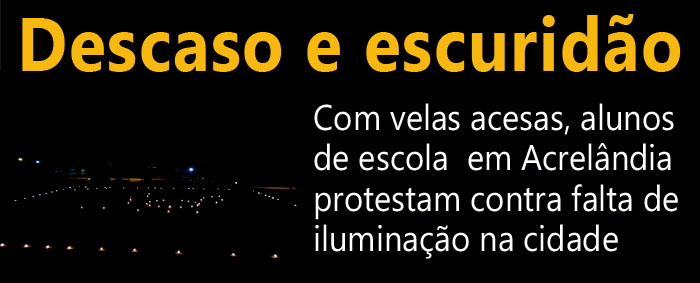 Os alunos do 4º período do EJA da escola Pedro de Castro Meireles, em Acrelândia, iluminaram a praça da cidade com velas em protesto contra a falta de iluminação pública no local.