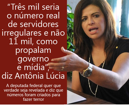 A parlamentar disse que vai pedir informações oficiais à Procuradoria Geral do Estado sobre a quantidade real dos servidores contratados sem concurso público até 1995. “Vou pedir informações oficiais a Procuradoria Geral do Estado sobre o número preciso dos funcionários do Estado que se encontram em situação de irregularidade, evitando-se a demagogia política que alguns vêm fazendo, espalhando terror. Vou acabar com a festa dos que tentam pescar (eleitores) em águas turvas! A verdade liberta”, completa Antônia Lúcia.