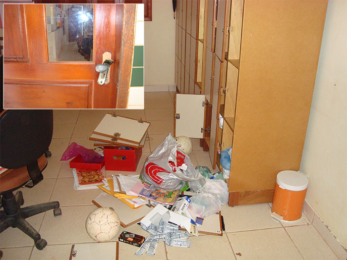 Pelo menos cinco salas e um consultório odontológico foram arrombados de onde foram levados 24 aparelhos de DVD, dois televisores de 29 polegadas, uma bomba d’água, oito microsistem e dois Datashow, além do furto de um aparelho odontológico Fotopoliminizador.