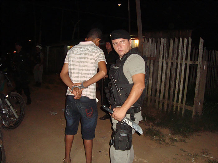 Um adolescentes de 16 anos foi preso armado com um facão, ele é suspeito de realizar assaltos a populares, principalmente mulheres. Outras cinco pessoas foram presas acusadas de tráfico de drogas e posse de munição.
