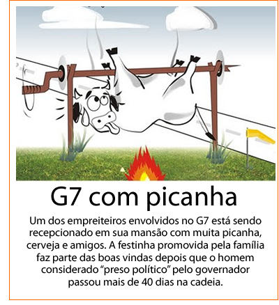 O diretor-presidente do Iapen, Dirceu Augusto, teria ficado numa famosa “saia justa” com os presos de luxo da G-7. O motivo: por ter deixado o empreiteiro Sérgio Nakamura sair algemado da Papudinha, no Camburão da PM junto com outros presos até o Fórum Criminal na semana passada, onde o empreiteiro prestou depoimento por causa de crime ambiental. (LT)