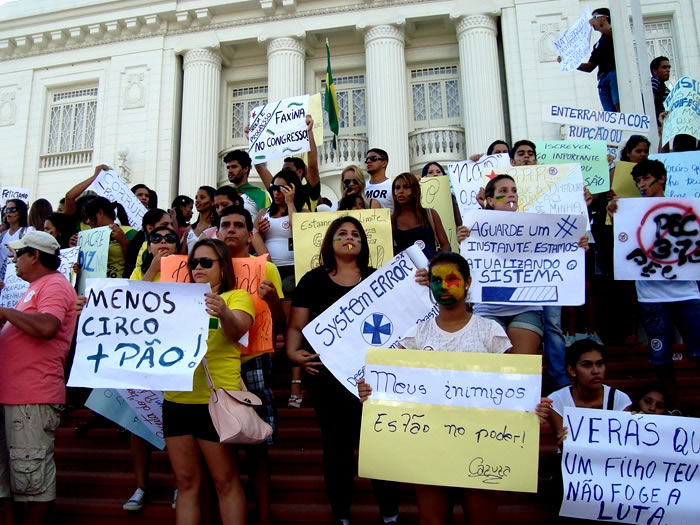 Os manifestante pediram o fim da pensão de ex-governador, considerada imoral pela população e pelo Supremo Tribunal Federal (STF), que deverá se posicionar pelo fim do pagamento do benefício.