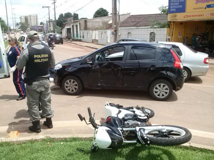 De acordo com informações policiais, Suzana Dourado da Silva, 30 anos, conduzia um veículo Fiat Palio preto no sentido bairro-centro, na rua Otavio Rola, quando ao entrar na rotatória, o motociclista Magno Junior Xavier, 21 anos, que vinha no sentido bairro-centro colidiu com o carro.