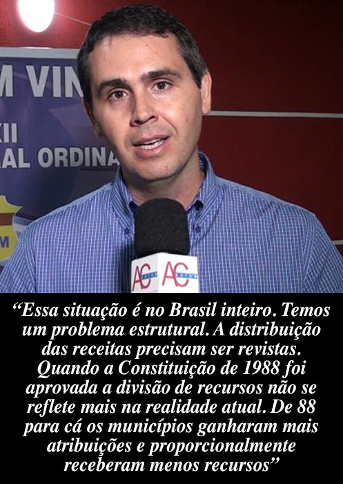 Marcos Viana – Essa situação é no Brasil inteiro. Temos um problema estrutural. A distribuição das receitas precisam ser revistas. Quando a Constituição de 1988 foi aprovada a divisão de recursos não se reflete mais na realidade atual. De 88 para cá os municípios ganharam mais atribuições e proporcionalmente receberam menos recursos. Hoje temos uma realidade em que dois terços das receitas do país ficam com a União. O restante é distribuído para estados e municípios. E os municípios ficam com menos de 10%. Essa distribuição de receita aliada as atribuições dos prefeitos é que causam esse problema. A União dá um incentivo para manter a macroeconomia do país reduzindo o IPI. Só que a receita dos municípios, o FPM, está vinculada à arrecadação da União, que tem parte atrelada ao IPI. Quando a União desonera o IPI acaba diminuindo o repasse para os municípios. Esse problema é gravíssimo. O ex-presidente Lula (PT) melhorou as receitas dos municípios nos meses de dezembro para ajudar no pagamento do décimo terceiro das folhas. E a presidente Dilma (PT) liberou mais uma parcela em abril para reforçar o caixa das prefeituras, mas não resolveu. A saída seria fazer o “Pacto Federativo” para discutir como serão distribuídos as receitas do país. Um exemplo é Rio Branco que tem 50% da população do Acre e uma malha de ruas de 700 quilômetros. No entanto, o nosso orçamento representa apenas 10% do Estado. Assim a gente vê a desproporção de cuidar de uma cidade que tem mais de 360 mil habitantes com menos de R$ 500 milhões por ano.