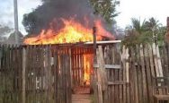 Uma casa construída em madeira pegou fogo na manhã desta sexta-feira, 02, no Bairro Tancredo Neves, que fica na região Norte da cidade. A causa do sinistro ainda é incerta, mas existem informações de que o fogo iniciou nos fundos da casa.