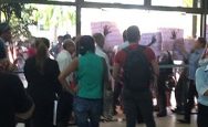 Após alguns minutos de negociação os manifestantes liberaram a saída de pessoas do prédio.
