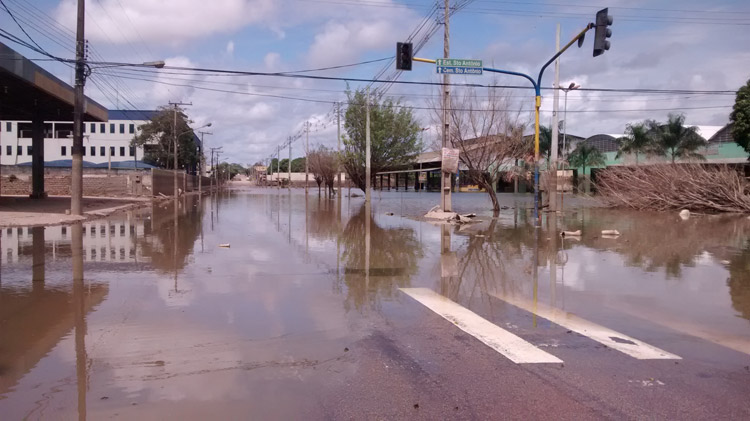 Boa parte das ruas nas proximidades do Rio Madeira em Porto Velho, como a Rogério Weber, segue alagada mesmo com o nível das águas regredindo diariamente. A Rogério Weber liga o centro da cidade aos bairros mais antigos como Areal e Candelária. Em vias mais próximas, no Bairro Cai N’Água além da alagação, há muita lama. Nas ruas um pouco mais afastadas o trabalho de remoção do lixo já começou.