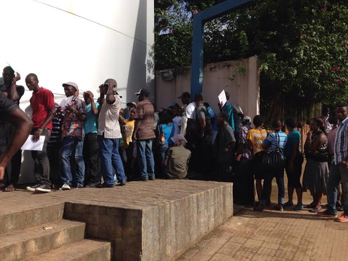 Diversos haitianos e senegaleses formam filas na Delegacia do Ministério do Trabalho e Emprego no Acre nesta quarta-feira (14) em busca de informações e a expedição da carteira de trabalho.