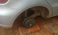 Uma servidora deixou de trabalhar nesta quarta-feira (14) após ter o pneu de seu carro roubado. A foto do veículo sem a roda foi postada pelo juiz Giordane Dourado que fez chacota com o programa do “apito do povo”.