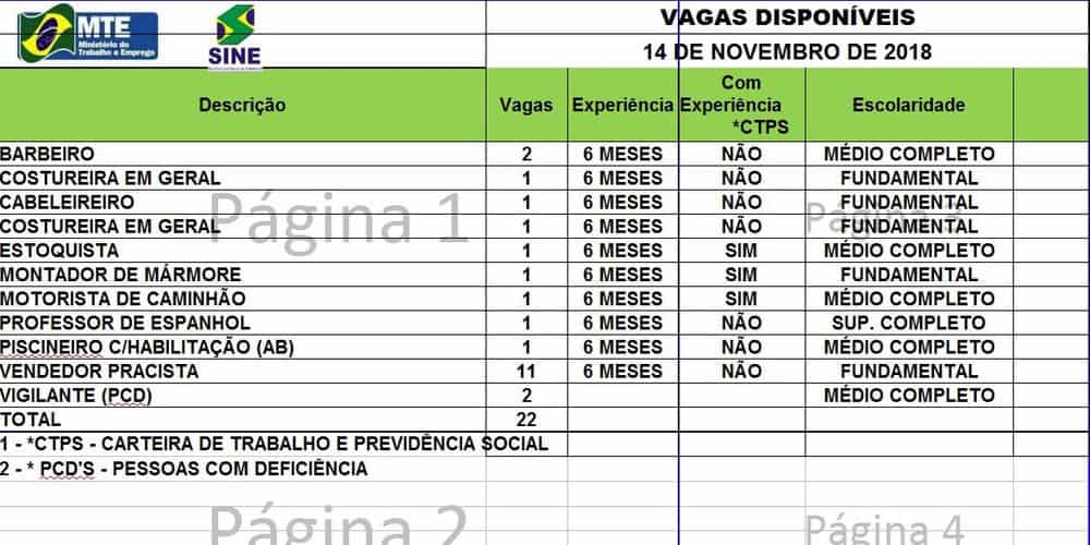 As vagas são rotativas, ou seja, são disponibilizadas para o dia, podendo não estar mais disponíveis para o dia seguinte. O Sine se responsabiliza por encaminhar cinco pessoas, no perfil solicitado pelo empregador, para que ele possa escolher qual vai preencher a vaga. O cidadão pode verificar se a vaga ainda está disponível através do telefone 0800 647 8182.