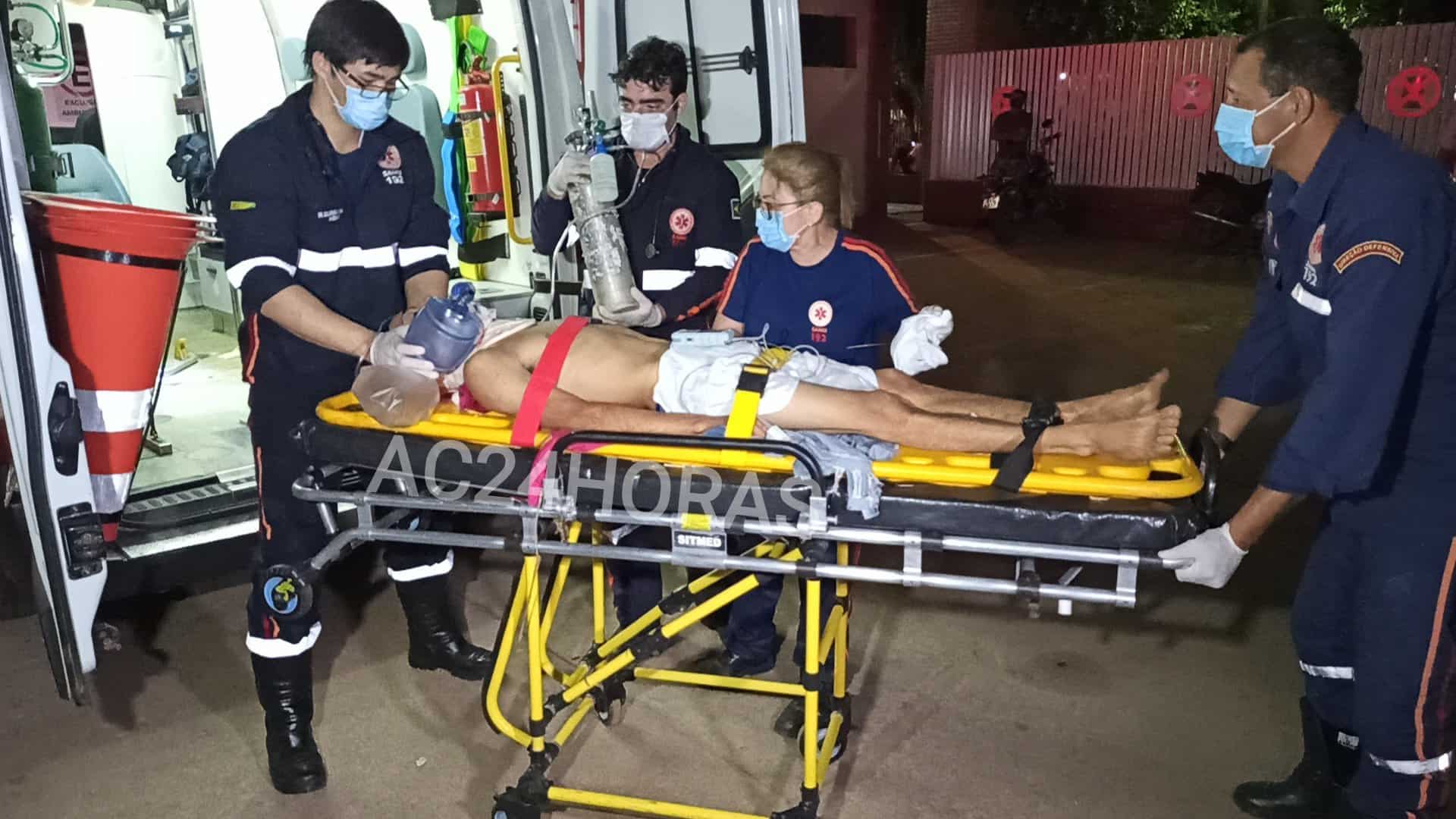 A ambulância do suporte avançado do Serviço de Atendimento Móvel de Urgência (SAMU) foi acionada, os paramédicos prestaram os primeiros atendimentos e encaminharam o jovem ao Pronto-Socorro de Rio Branco. Segundo o médico do SAMU, o paciente foi atingindo com um tiro na cabeça, perdeu massa encefálica e sofreu um traumatismo craniano grave.