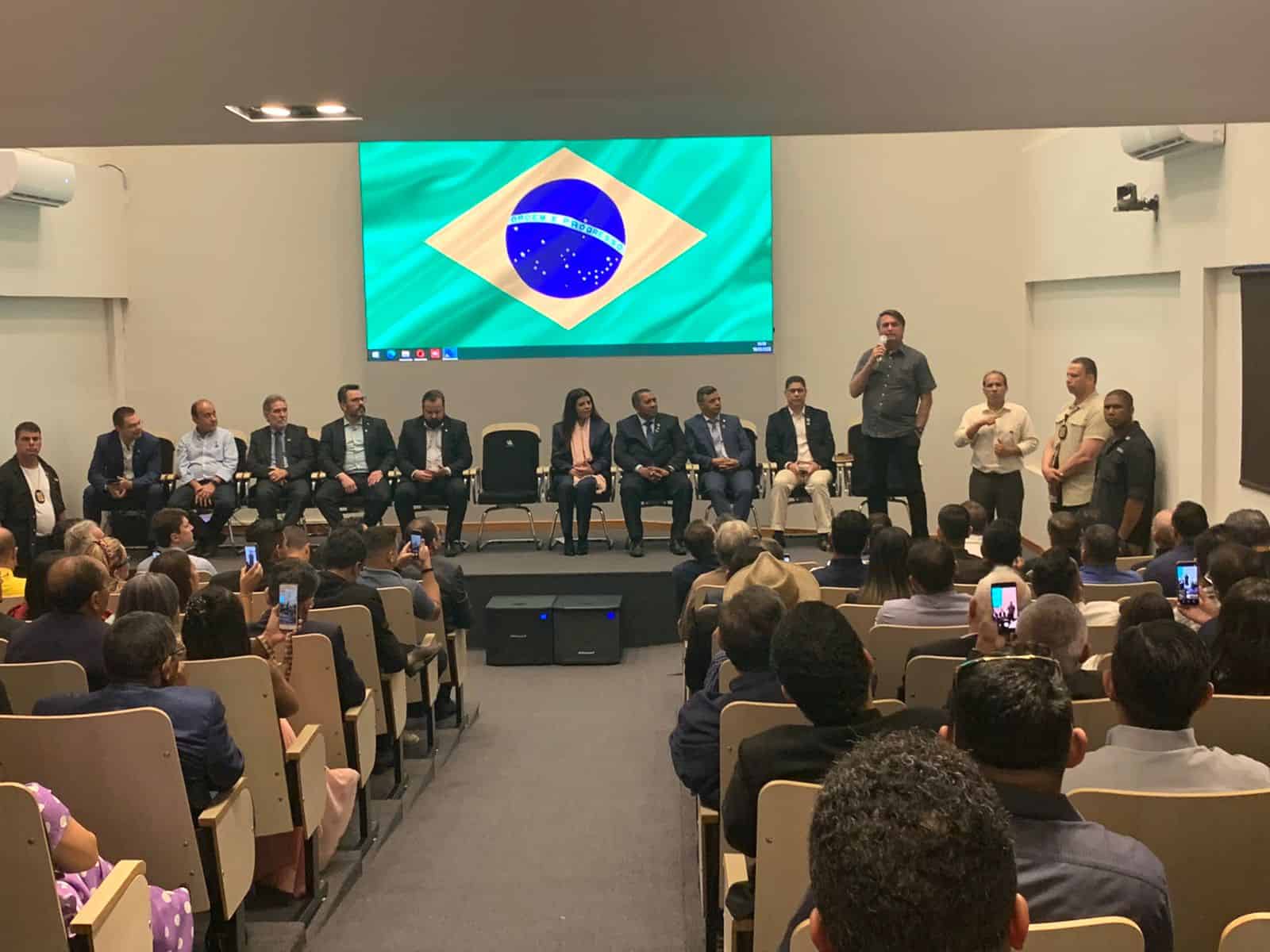 Ao fim da solenidade, o presidente Jair Bolsonaro foi homenageado pela Associação dos Ministros das Igrejas do Acre.