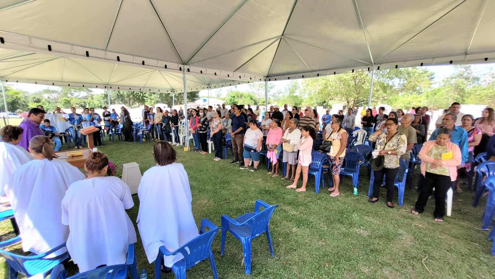 Em uma tenda no local, também ocorreu um momento de louvor e oração, feito por pastores da Igreja Adventista do Sétimo Dia. A prefeita do município, Rosana Gomes, esteve presente durante as duas ocasiões.