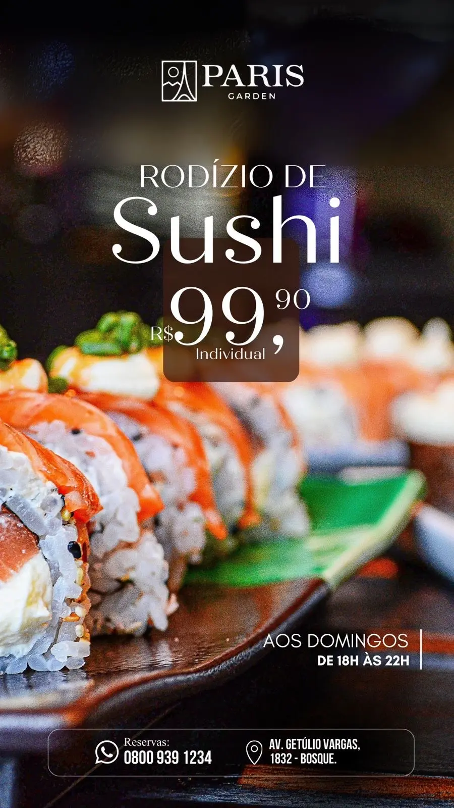 Paris Garden tem rodízio de sushi por R$99,90 aos domingos