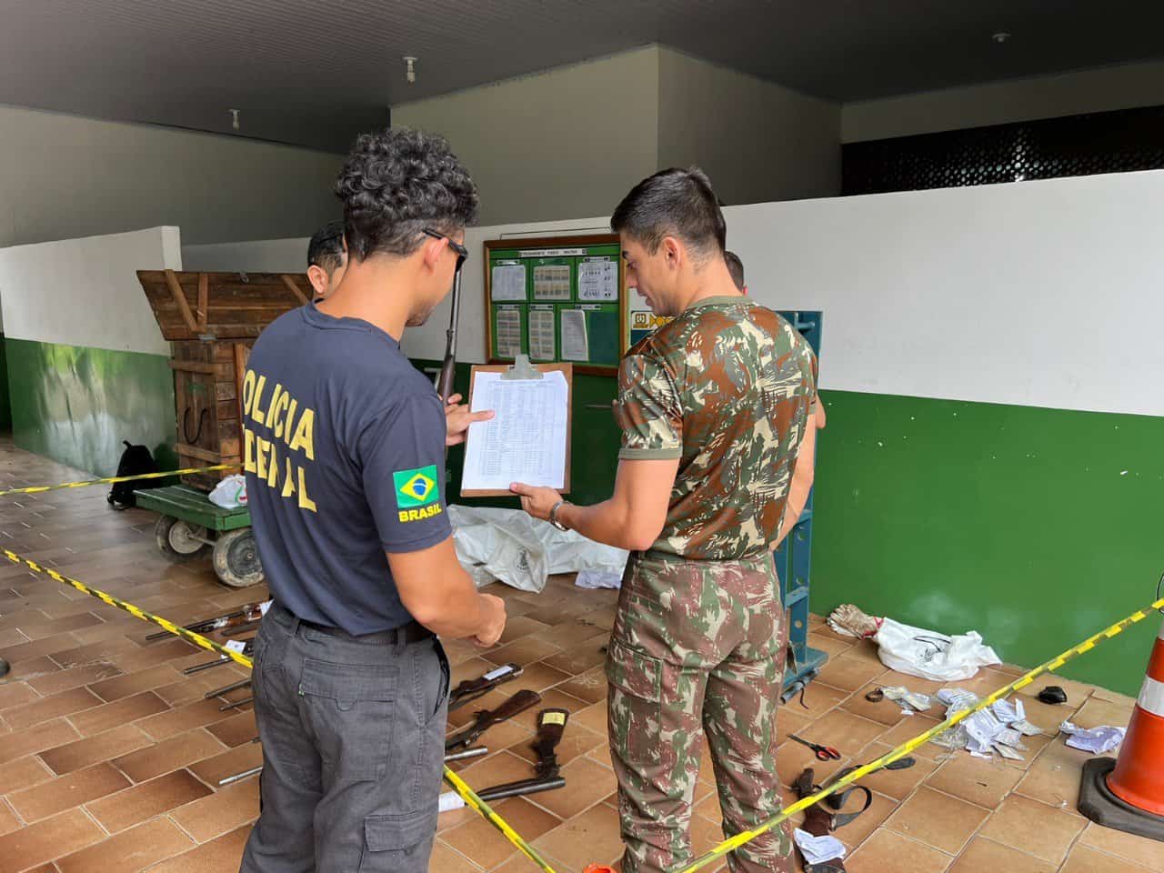Nesta quinta feira, 12, a Polícia Federal encaminhou para destruição 39 armas de fogo, dentre as quais havia 23 revólveres, 14 espingardas e 2 pistolas, além de 272 munições, 242 de calibre 38, 22 de calibre 20, 2 de calibre 28 e 4 de calibre 32.