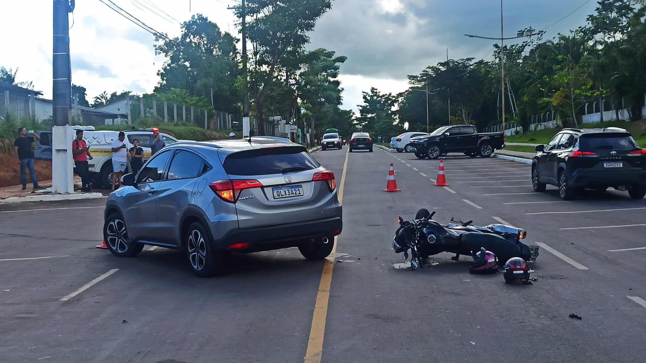 Uma colisão entre um veículo modelo Honda HRV, de cor prata, placa QLX-3A21 e uma motocicleta modelo Honda CG 160 Fan, de cor preta, placa OXP-3385, resultou no casal identificados como João Pedro da Silva, de 24 anos e Wiliane Santos da Silva, 31 anos, feridos na tarde desta sexta-feira, 13, na Estrada Dias Martins, nas proximidades do residencial Chácara Ipê, em Rio Branco.