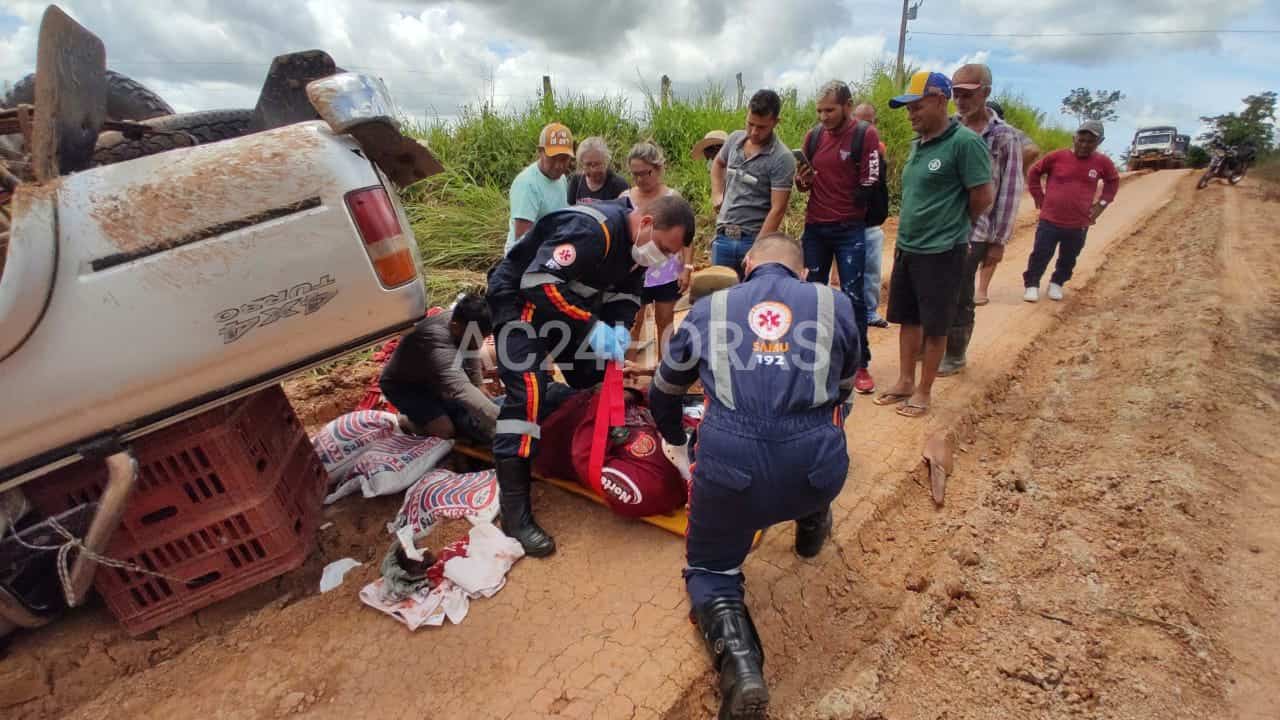 Um grave acidente de trânsito deixou o motociclista Cesar Antônio de Oliveira, de 51 anos, ferido e uma caminhonete capotada na tarde desta sexta-feira, 13, no km 14 do Ramal do Riozinho do Rola, Rodovia AC-90, na região da Transacreana, na zona rural de Rio Branco.