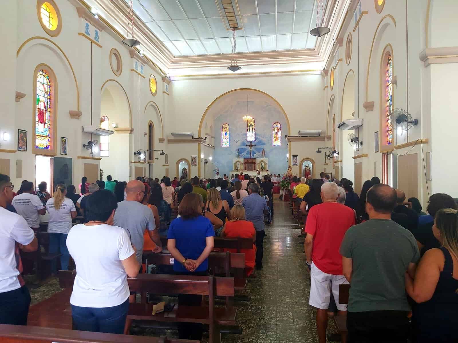 Depois de uma primeira celebração com pequena presença de fiéis, às 7h da manhã, a igreja de São Sebastião, em Xapuri, ficou lotada na segunda missa, às 10h.