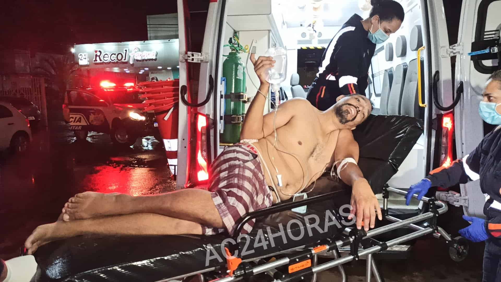 A ambulância do suporte avançado do SAMU foi acionada, Pedro recebeu os primeiros atendimentos e foi encaminhado ao Pronto-Socorro de Rio Branco. Segundo a Médica do SAMU, Thaísa Amorim, o paciente estava estilizado, sofreu uma perfuração de faca no glúteo e seu estado de saúde é estável.