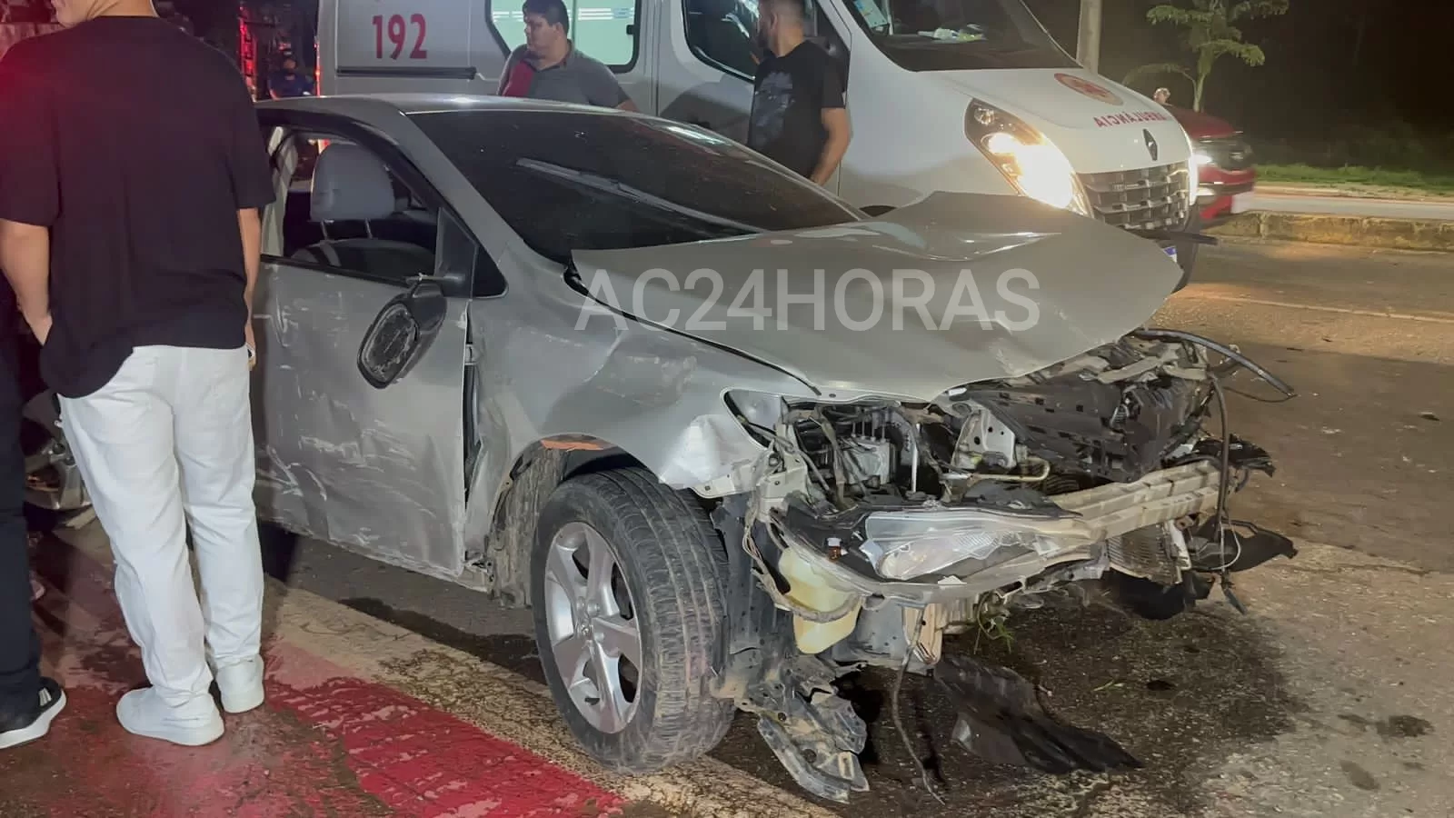 Uma colisão entre veículos deixou três mulheres identificadas como Mayara do nascimento Araújo, 30 anos, Alessandra Uchôa da Silva, de 26, e Laysa Taveira de Oliveira, de 29, feridas e um veículo modelo Corolla, de cor prata, e placa NAC-4D45, destruído, na noite deste sábado, 10, na Estrada Dias Martins, no bairro Primavera, em Rio Branco.