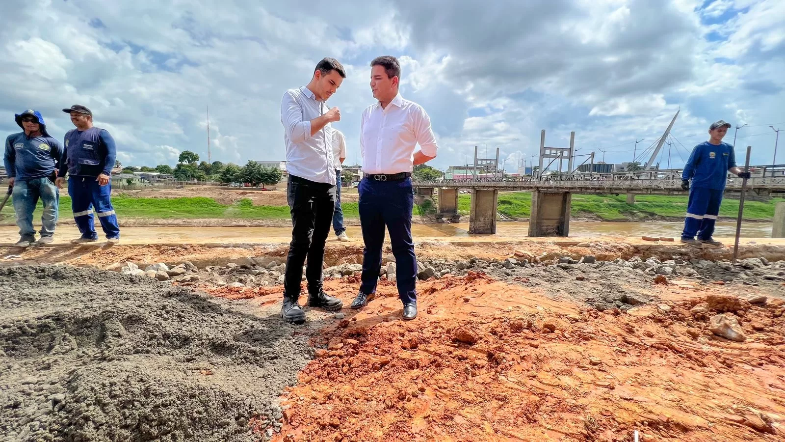 O governador Gladson Cameli esteve, na manhã deste sábado, 10, no local dos serviços de recuperação do Calçadão da Gameleira, que sofreu afundamento em decorrência da última enchente do Rio Acre.