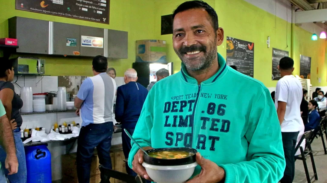 Na Praça da Revolução, os dois quiosques que vendem tacacá e rabada formam filas, mas disputam a atenção com moradores de rua e o frio. Mesas de plástico estão no local para reforçar a capacidade de atendimento.