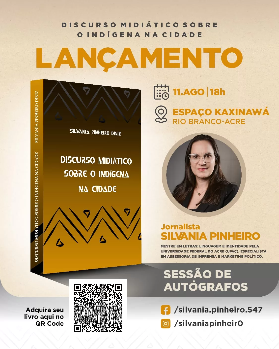 A jornalista e escritora, Silvânia Pinheiro, deve lançar nesta sexta-feira, 11, o livro “Discurso Midiático sobre o Indígena na Cidade”, às 18h, no Espaço Kaxinawá, em Rio Branco.