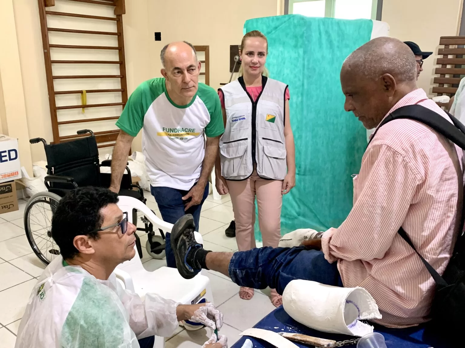 Após a equipe técnica da Fundhacre e a Oficina Ortopédica realizarem o quantitativo e atualização cadastral dos pacientes na região, a fase agora consiste em ofertar o atendimento médico, fisioterapêutico e a confecção dos moldes das órteses, próteses, botas ortopédicas, palmilhas e sapatos.