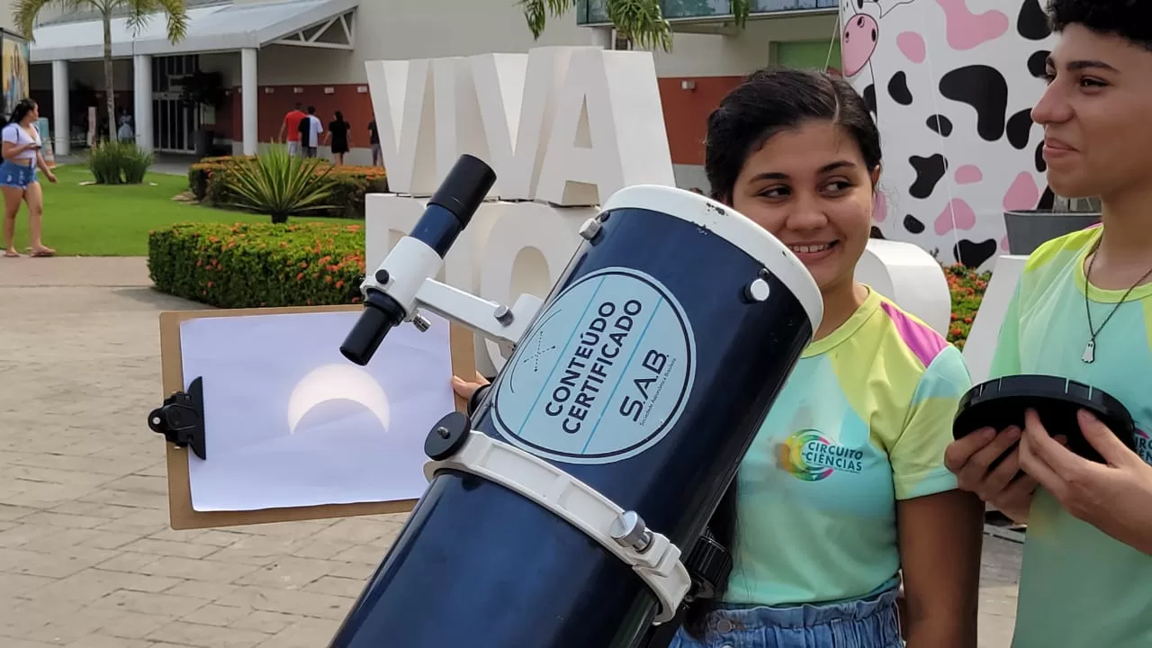 A iniciativa de estudantes do Instituto Federal de Ciência e Tecnologia do Acre (IFAC), que posicionou um telescópio em frente ao Via Verde Shopping de Rio Branco atraiu muita gente para ver o eclipse solar anular que aconteceu na tarde deste sábado, 14.