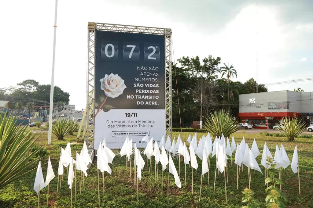 O motivo é nobre e tenta chamar atenção de quem passa pelo local para os cuidados e atitudes conscientes no trânsito. As 72 bandeiras brancas representam as vidas perdidas no trânsito do Acre este ano, sejam em rodovias federais, estaduais e em perímetros urbanos.