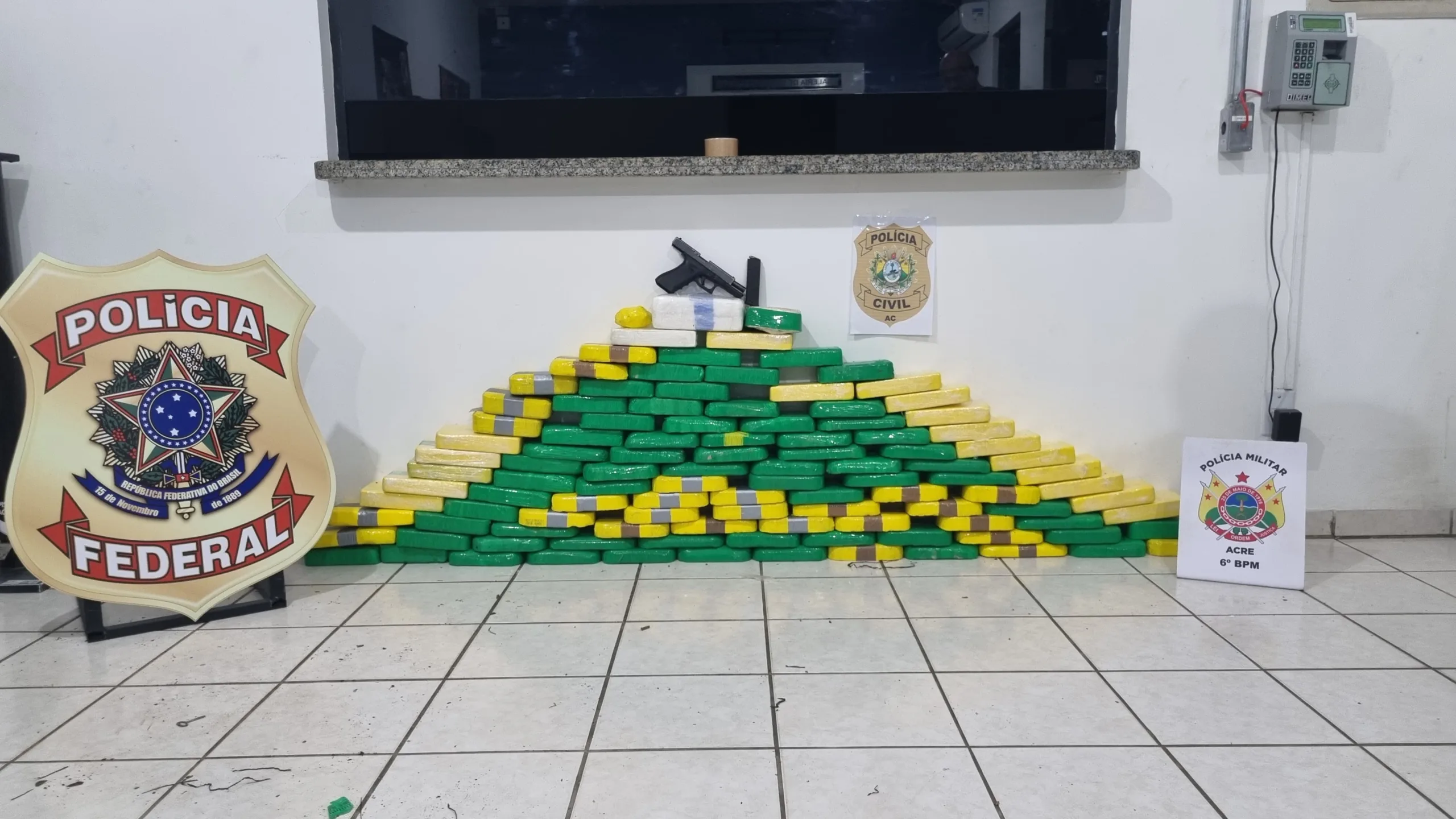 Na madrugada desta sexta-feira, 29, em Mâncio Lima, as Polícias Federal e Militar aprenderam 112 quilos de cocaína e uma pistola.