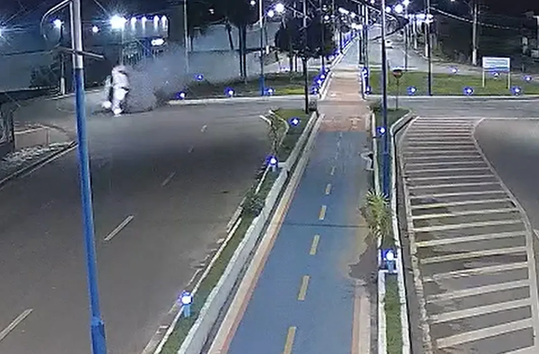 Imagens de câmeras de segurança instaladas na Via Chico Mendes, em Rio Branco, flagraram o momento que um carro modelo Honda Civic capotou na noite do último sábado, 20.
