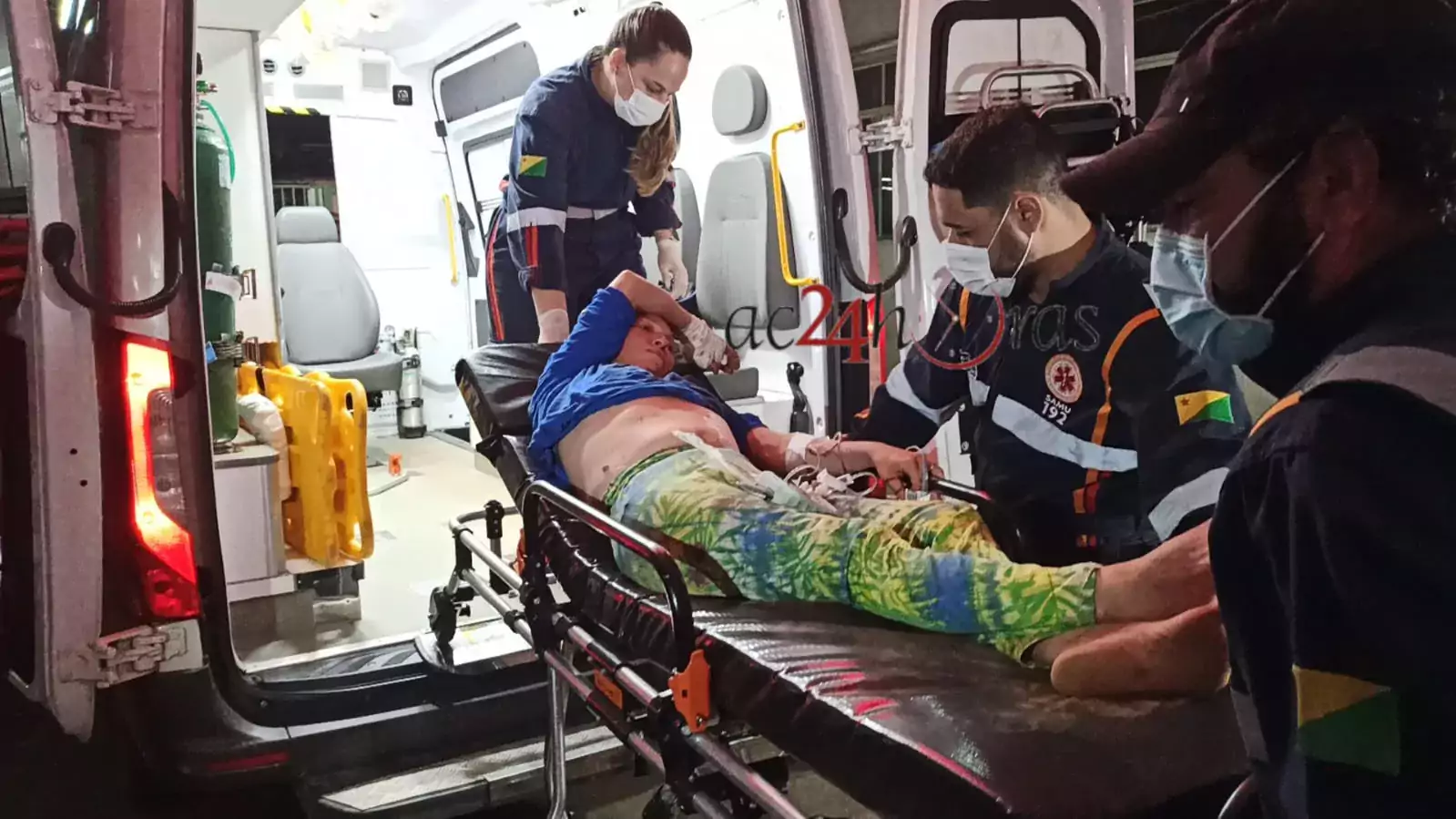 A ambulância do suporte avançado do Serviço de Atendimento Móvel de Urgência (SAMU) foi acionada, os Paramédicos prestaram os primeiros atendimentos e encaminharam Cleomar ao Pronto-Socorro de Rio Branco em estado de saúde estável.