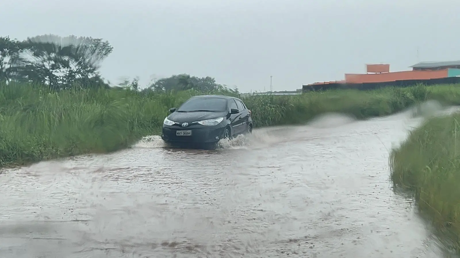 Rua da Baixada da Sobral é tomada pela água após forte chuva em Rio Branco
