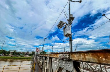 A Plataforma de Coleta de Dados da Agência Nacional de Águas da ponte Juscelino Kubitschek, único meio tecnológico que auxilia os órgãos de defesa na