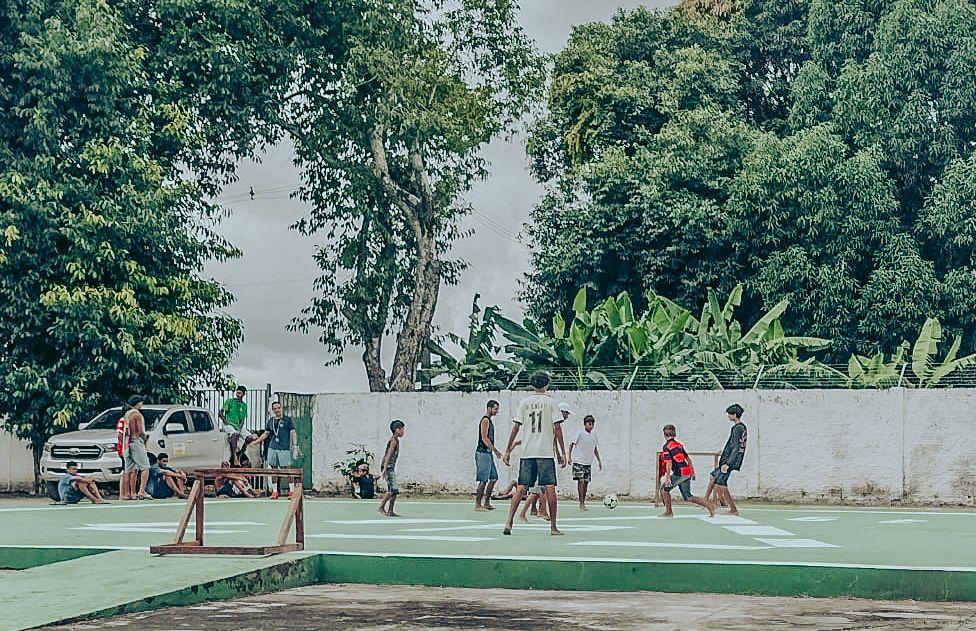 Enquanto chutam a bola, aquelas crianças que ainda não compreendem a amplitude do desastre que estamos vivendo, aproveitam o “tempo livre” e o espaço seguro para brincar enquanto esperam Deus dar bom tempo para que suas famílias possa voltar para seus lares.