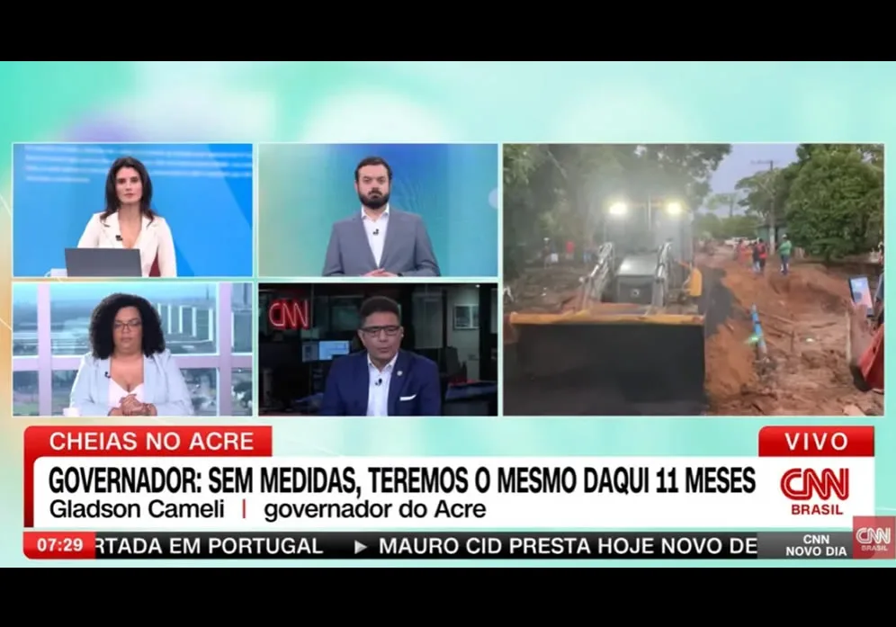 O governador Gladson Cameli foi entrevistado ao vivo na manhã desta segunda-feira, 11, pela CNN Brasil sobre o momento vivido pelo Acre pós-enchentes que afetaram quase todos os municípios. Durante a conversa com os jornalistas, lembrou que 86% da população acreana foi afetada pelas alagações e que 19 dos 22 municípios do estado estão em estado de emergência.