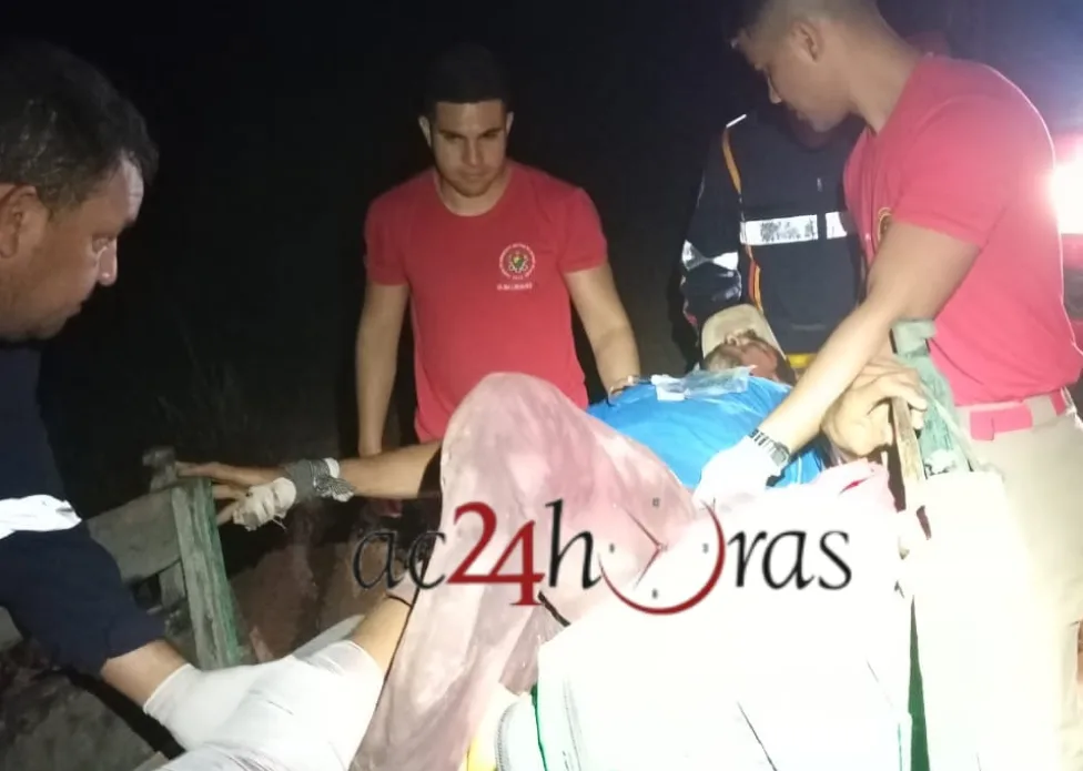Familiares acionaram o Corpo de Bombeiros e o Serviço de Atendimento Móvel de Urgência (SAMU). Os profissionais se deslocaram até a área rural, chegando no local ja na madrugada deste sábado, 16. Foi prestado os primeiros atendimentos e o colono foi trazido para o Pronto-Socorro de Rio Branco em estado de saúde estável.