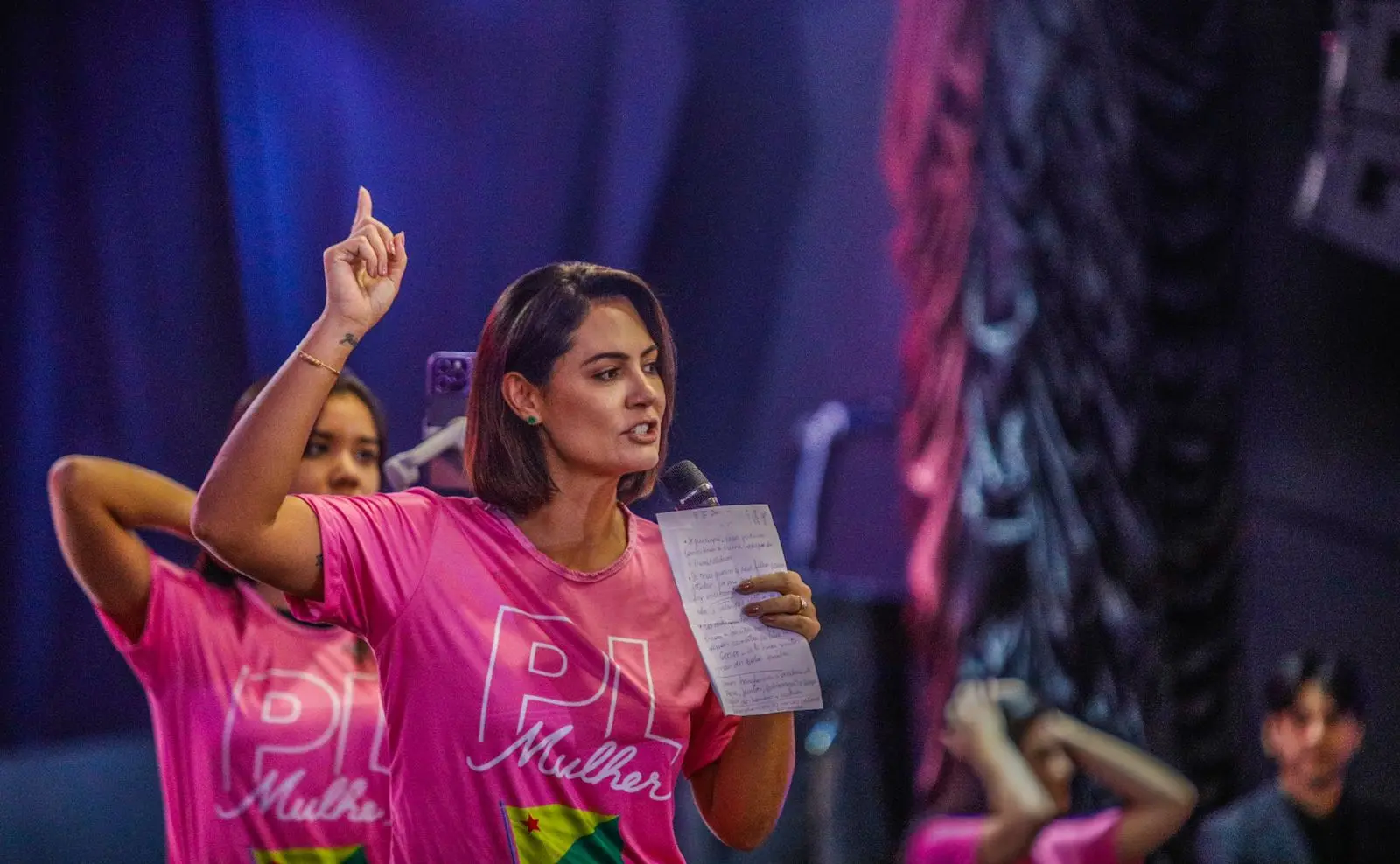 Recebida com aplausos ao subir ao palco, Michelle foi ovacionada pelos apoiadores do ex-presidente Jair Bolsonaro. Após o hino nacional, ela destacou que Bolsonaro reacendeu o patriotismo no país. “Nosso eterno presidente resgatou o amor à pátria. O Brasil tem solução e é uma terra próspera”, disse.