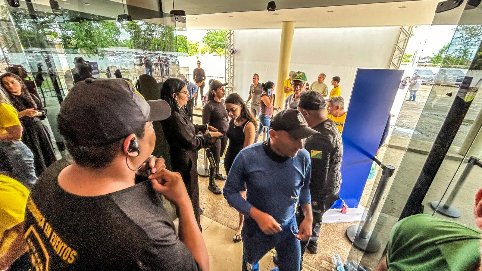 O acesso ao térreo, onde está o palco, estava isolado, já que todos os assentos estão ocupados. Os apoiadores remanescentes, então, ocupam o primeiro piso do buffet, e assistem ao evento apoiados no parapeito, ou por telões que transmitem o evento.