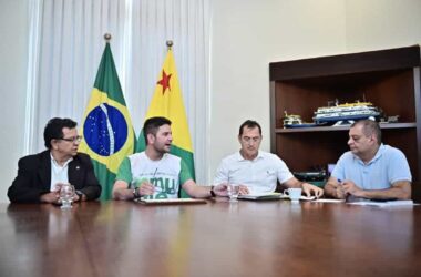 O governador Gladson Cameli se reuniu na manhã desta segunda-feira, 25, no Palácio Rio Branco, com o titular da Secretaria de Indústria, Ciência e Tecnologia
